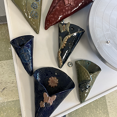 Hand build a beautiful Large 8"Wall Pocket! Ages 5 to 110! Ages 5-9 must have a paid attendee age 16+.Classes include 2 hours instruction on building and 2 hours following week to glaze. We will use various tools, techniques for these classes! This course is two consecutive Thursdays.